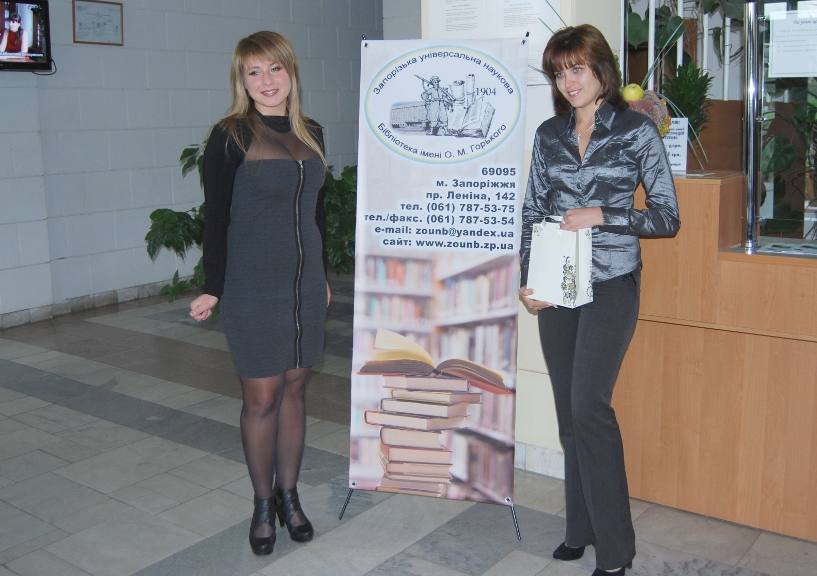 Победителями в номинации "Самые активные читатели месяца" и, естественно, любимцами библиотекарей сезона 2011 - 2012 гг., стали преподаватель Владимир Растворов и студентка ЗНУ Алина Ивженко, приходившие в библиотеку едва ли не каждый день. На память об этом событии - книги в подарок от библиотеки.