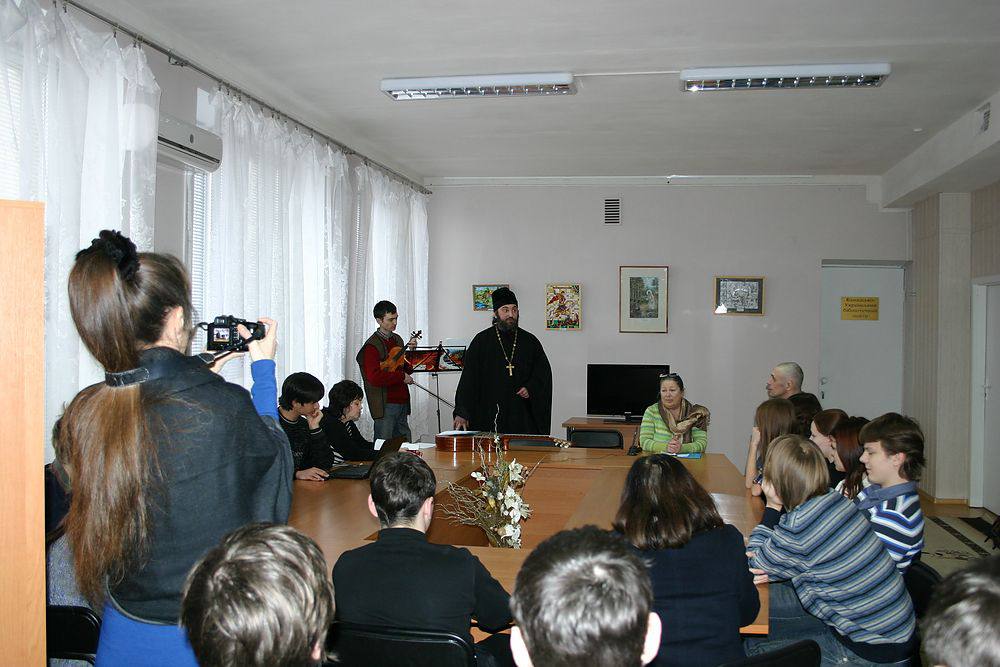 Программа «Вдоль книжной полки», предваряющая официальное открытие выставки «Мир православной книги», была посвящена Александру Сергеевичу Пушкину. Память великого поэта мы особенно чтим в связи с исполнением в февральские дни 175-летия со дня его смерти. В программе «Православие в творчестве А.С. Пушкина» приняли участие протоиерей Вячеслав Власенко, Галина Николаевна Ляхова, заведующая библиотекой Донецкого Центра славянской культуры, учащиеся Запорожского лицея № 105, читатели и библиотекари. Интерес к религиозным мотивам в творчестве Пушкина и к религиозности самого поэта появился сравнительно недавно. Православие Пушкина, отмечали в своих выступлениях о. Вячеслав и Г.Н. Ляхова, проявляется и в его внутренней духовной жизни, взглядах на красоту, поэзию и призвание поэта, это общекультурная почва, на которой возросло его творчество. Христианство поэт считал "величайшим духовным и политическим переворотом нашей планеты", в "священной стихии которого обновился мир". Поэт хорошо знал Библию, часто ее перечитывал, он упоминает в своих произведениях книги Моисея, пророка Исаии, Екклезиаста, Иова, Песнь Песней, Псалтирь, Апокалипсис и др. На библейские сюжеты им написано немало стихов. Известен отзыв поэта о Евангелии: "Есть книга, коей каждое слово истолковано, объяснено, проповедано во всех концах земли, применено ко всевозможным обстоятельствам жизни и происшествиям мира; из коей нельзя повторить ни единого выражения, которого не знали бы все наизусть, которое не было бы уже пословицею народов; она не заключает уже для нас ничего неизвестного; но книга сия называется Евангелием, и такова ее вечно новая прелесть, что если мы, пресыщенные миром или удрученные унынием, случайно откроем ее, то уже не в силах противиться ее сладостному увлечению и погружаемся духом в ее Божественное красноречие". Тема православия в его творчестве обусловлена уже тем, что поэт с детства был тесно связан с православной обрядностью и православным бытом: он посещал богослужения, заказывал в церкви панихиды и молебны; перед смертью исповедался и причастился, как глава семьи и отец благословил жену и детей. Пушкин читал православную богословскую литературу, Четьи-Минеи, писал сочувственные рецензии на духовную литературу, статьи, в которых исключительно высоко оценивает роль духовенства, монастырей и монашества в древнерусской культуре. Тема православия Пушкина возникает и в тех его произведениях, на которых прямо лежит отпечаток православного мировоззрения. В стихотворении "Отцы пустынники и жены непорочны..." православное мировосприятие Пушкина, подчеркнул о. Вячеслав, выражено наиболее отчетливо, ведь именно в это стихотворение входит переложение известной православной молитвы преподобного Ефрема Сирина. Стихи А.С. Пушкина в исполнении о. Вячеслава звучали особенно проникновенно. Затем наступило волшебное время музыки — пушкинская тема присутствовала в композициях о. Вячеслава и скрипача, артиста академического симфонического оркестра Запорожской областной филармонии Владимира Петровича Саенко. Эта встреча закончилась, но «Мир православной книги» обещает прекрасные новые встречи.