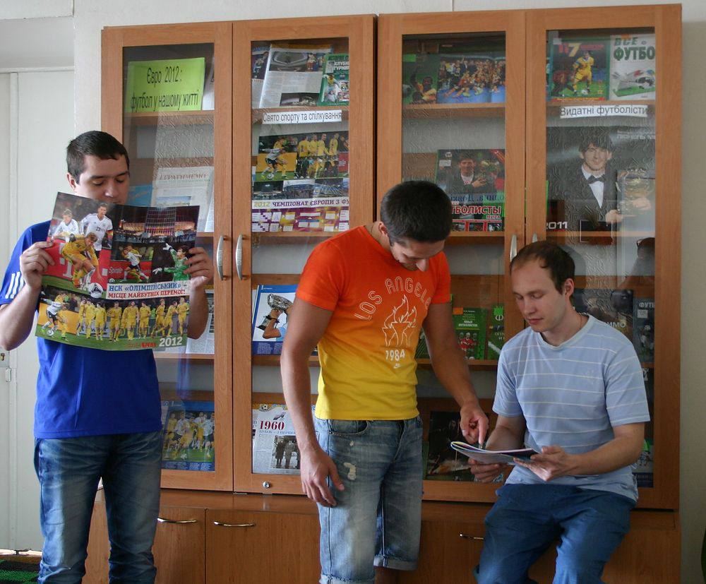 Сегодня, 8 июня, в Варшаве открывается чемпионат Европы по футболу. После торжественной церемонии в матче открытия турнира сыграют сборные Польши и Греции. Позже во Вроцлаве сыграют россияне и чехи. Первые поединки в Украине запланированы на 9 июня: в Харькове состоится матч Нидерланды - Дания, во Львове - Германия - Португалия. Сборная Украины сыграет свой первый матч в понедельник, 11 июня. В Киеве украинская команда встретится со сборной Швеции. Одновременно с открытием Евро – 2012 для посетителей библиотеки в читальном зале на 5-ом этаже состоялась церемония открытия выставки «Евро – 2012: футбол в нашей жизни».