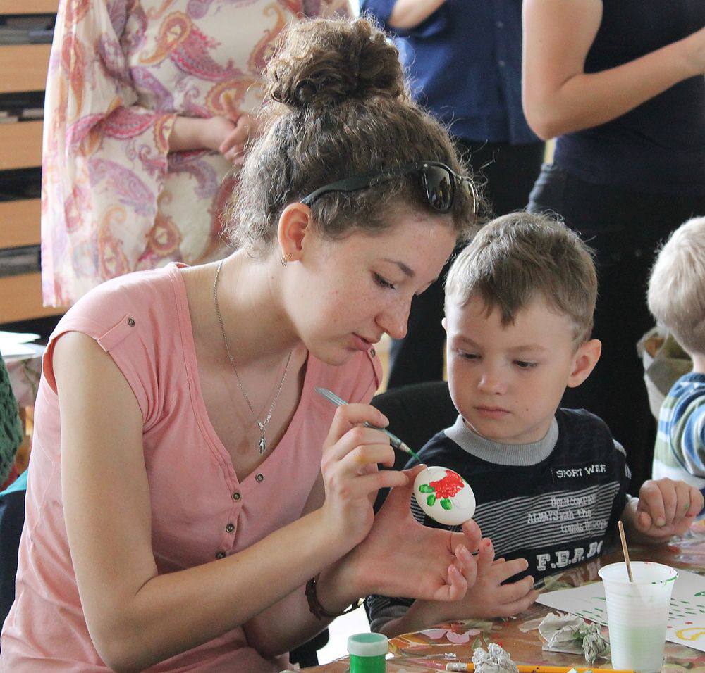 Напередодні Великодня працівники бібліотеки, волонтери соціального центру «Проміння» та учні Матвіївської школи-інтернату провели майстер-клас з виготовлення писанки для вихованців дитячого садочка №75. Малюки з цікавістю слухали розповідь про традиції писанкарства, а потім із захопленням самі розмальовували яйця у техніці петриківського розпису. Використовували все: пальчики, піпетки, пензлики. Зображали традиційні українські символи: калину, мальви, листочки барвінку. Наприкінці кожен отримав свій маленький Великодній шедевр.