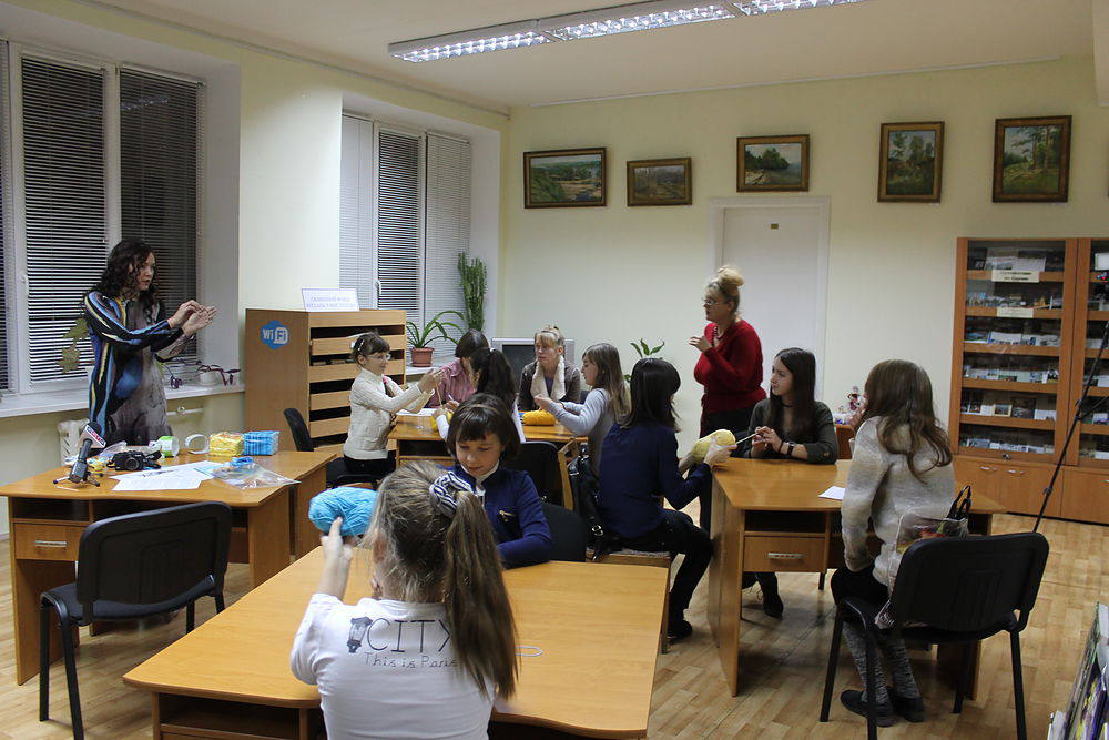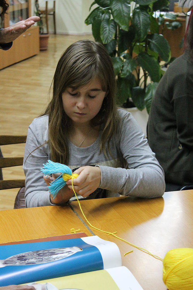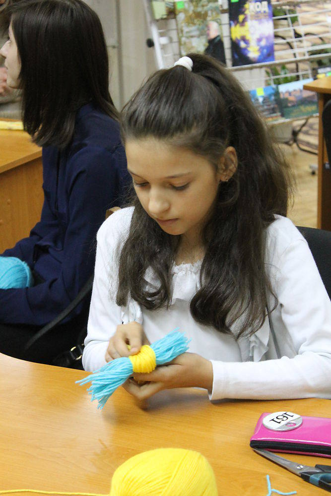 13 листопада у відділі мистецтв Ірина Шатова, викладач КПУ, провела майстер-клас з виготовлення оберегової ляльки-мотанки "Патріотична". Діти та дорослі плели з жовтих та синіх ниток магічні обереги, які згодом волонтери передадуть бійцям – захисникам нашої Вітчизни.