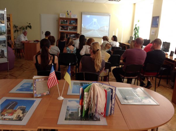 6 липня засідання розмовного клубу було присвячено темі American Architecture. Учасники у динамічному форматі з використанням ефективних методик для вдосконалення розмовних навичок (Hot Seat, Speed English, Draw it, Stand-Up English) дізналися про архітектурні стилі, найбільш поширені у США. Гостем клубу був архітектор Віктор Шапошников. Він поділився своїми враженнями від подорожей Сполученими Штатами і презентував виставку своїх фотографій та картин, присвячених американській архітектурі.