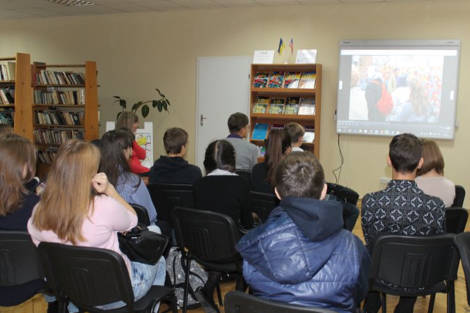 27 вересня до центру «Вікно в Америку» відділу документів іноземними мовами завітали учні запорізького ліцею № 105. За програмою, передбаченою відзначенням Року англійської мови в Україні, бібліотекарі розповідали про природу і культуру Сполучених штатів. Гості переглянули відео про багатонаціональний район Mission District в Сан-Франциско, виконували лексичні вправи на інтерактивній дошці, обговорювали проблеми еміграції у форматі Speed English, повторили нові слова у форматі Hot Seat. Крім цього, вони грали у настільні ігри Great States, Scrambled States, Ticket to Ride: North America, Rory’s Story Cubes: Voyages, GeoPuzzles і, граючи у Describe it, малювали на планшетах. Слід зазначити, що програма «United States: Natural and Cultural Diversity» поєднує в собі використання новітніх технологій, інтегрований підхід до викладання англійської мови, а також гейміфікацію як нову концепцію навчання. Вона передбачає розвиток у студентів та учнів навичок командної роботи, які в XXI сторіччі належать вже до основних вимог до кандидатів на більшість посад в усіх сферах діяльності. Персонал центру "Вікно в Америку" застосовує ефективні методики для розвитку навичок говоріння, рекомендовані фахівцями Regional English Language Office при Посольстві США в Україні.