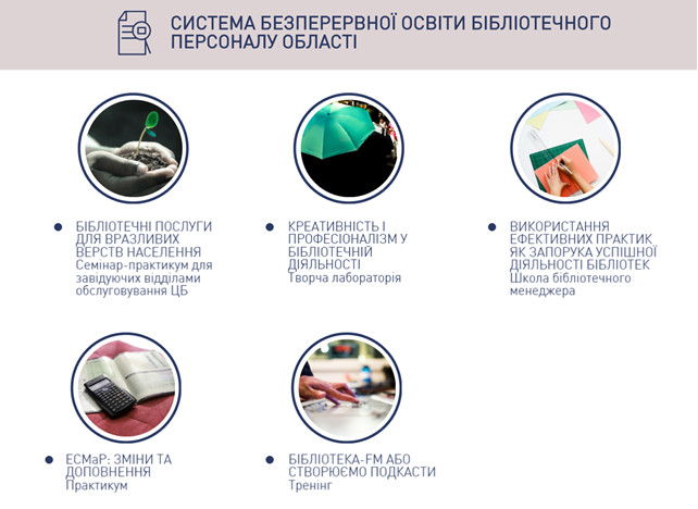 Протягом звітного року фахівці ОУНБ взяли участь у різноманітних всеукраїнських ті міжнародних заходах, таких як: ІХ Всеукраїнська науково-практична конференція ”Бібліотека і книга у контексті часу”, яку проводила Національна парламентська бібліотека України з нагоди свого 150-річчя; семінар-тренінг для керівників центрів”Вікно в Америку”; VІІ Львівський бібліотечний форум (проект "Культура академічної доброчесності"); семінар для бібліотек півдня України “Пам’ятки писемності та культури у фондах бібліотек” (м. Одеса); семінар «Оцінка результатів діяльності бібліотеки та форми професійної мотивації бібліотекарів» (м. Київ); Форум молодих бібліотекарів «Бібліотека на мапі міста» (м. Київ) науково-практичну конференцію «Миколаївська обласна універсальна наукова бібліотека – центр громадського життя та інноваційного розвитку», що була приурочена до 135-річчя від дня заснування бібліотеки, міжнародну науково-практичну конференцію “Усноісторичні дослідження: сучасні тенденції, напрямки та перспективи” (м. Вінниця), четверту Всеукраїнську школу бібліотечного журналіста (м. Харків) та ін. де наші співробітники обмінювалися досвідом, активно оволодівали сучасними навичками роботи. Досвід, набутий під час участі у конференціях, семінарах, тренінгах, активно впроваджується в роботу бібліотеки, передається колегам з бібліотек області.