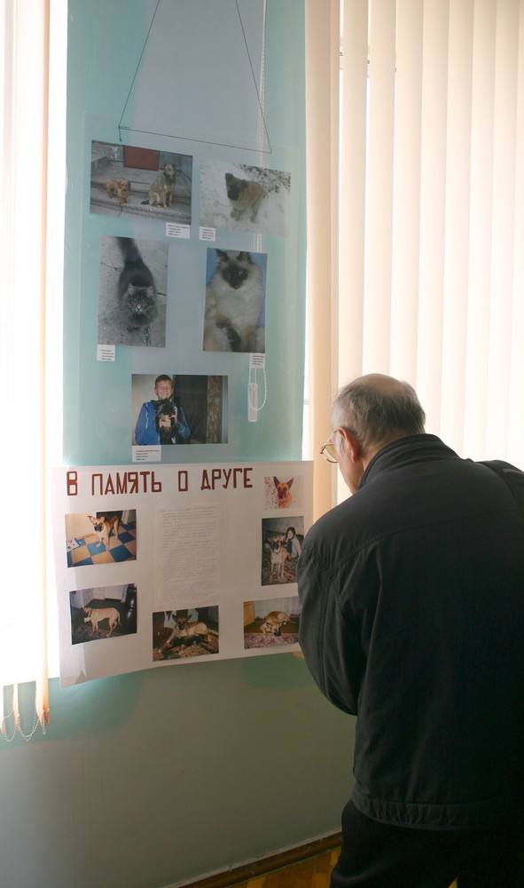 22 апреля в стенах библиотеки царила атмосфера любви и дружбы с братьями нашими меньшими. В этот день Запорожская общественная организация по защите прав животных "Дай лапу, друг" открывала выставку фото своих домашних любимцев, которая превратилась в акцию поддержки (и материальной в том числе) инициатив ЗОО. На фото были и сюжеты из непростой городской собачье-кошачьей жизни. Библиотека предложила участникам целый стенд книжных и журнальных советов по уходу и содержанию домашних животных, пригласила для интервью и своего ученого кота Рыжика, который, впрочем, предпочел беседе просто угощение от присутствующих журналистов. Особый интерес вызвали фотоработы ученика 8 класса лицея "Логос" Олега Черкасова. Его герой - кот Боня, игривый и приветливый из породы "священная бирма"приглашен на торжественный прием по случаю окончания первого этапа весеннего периода кошачьей экзальтации.