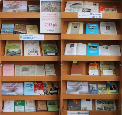 Бібліотекарі відділу краєзнавства запрошують відвідати експозицію документів, присвячених запорізьким ЗМІ. На виставці представлені видання, що розповідають про розвиток преси в Запорізькому краї від її зародження (1904 р.) і до сьогодення. Особливу увагу приділено цьогорічним газетам-ювілярам: «Запорізькій правді», бердянській «Південній зорі» і заводській багатотиражці «Феросплавник». Окремі розділи виставки висвітлюють діяльність видатних літописців-ювілярів, що присвятили все своє життя українській журналістиці - Олександру Михайловичу Гіммельфарбу, члену Національної спілки журналістів України, головному редактору Запорізького обласного радіо і Василю Макаровичу Басарабу, уродженцю Пологівського району, відповідальному секретарю обласної газети «Запорізька правда», редактору «Робітничої газети», заслуженому журналісту України.