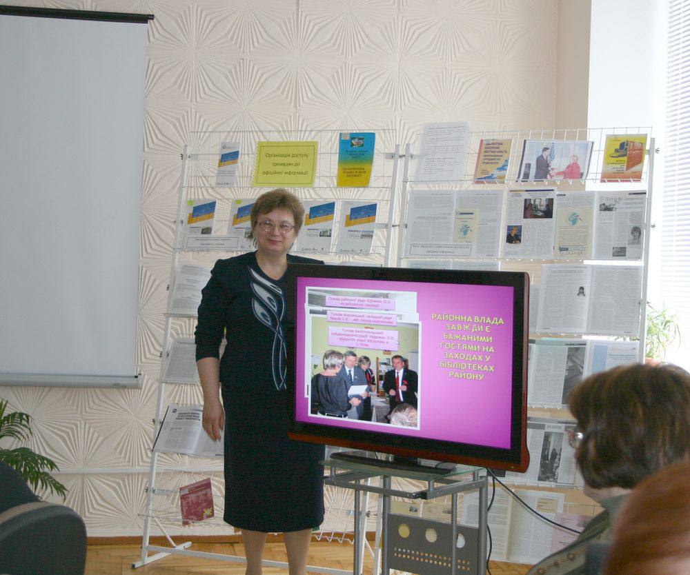 13-14 квітня відбувся регіональний тренінг за темою "Створення доступу громадян до офіційної інформації" для завідуючих відділами обслуговування центральних міських та районних бібліотек. Відповідно до програми учасники зосередилися на питаннях визначення основних завдань забезпечення вільного доступу до інформації в бібліотеках і шляхів їх вирішення, обговорили закон "Про доступ до публічної інформації", який нещодавно вступив у дію, ознайомилися з концепцією електронного урядування і спробували позиціювати свої заклади у схемах державної політики. Практичні вправи були присвячені пошуку необхідної читачам інформації на веб-сайтах законодавчих та виконавчих органів влади і місцевого самоврядування, формуванню оптимальних моделей пунктів доступу громадян до офіційної інформації на основі досвіду запорізьких публічних бібліотек.