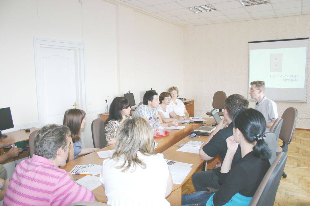 У Регіональному тренінговому центрі 22 червня відбувся тренінг за участі фахівців з ІТ публічних бібліотек Запоріжжя, Бердянська, Мелітополя і Чернігівки - переможців конкурсів «Організація нових бібліотечних послуг з використанням вільного доступу до Інтернету» програми "Бібліоміст". Йшлося про технічні питання і роботу обладнання, що постачається в рамках програми «Бібліоміст». Тренер - Олександр Шлєєнков, региональний координатор з питань технічного розвитку програми "Бібліоміст".