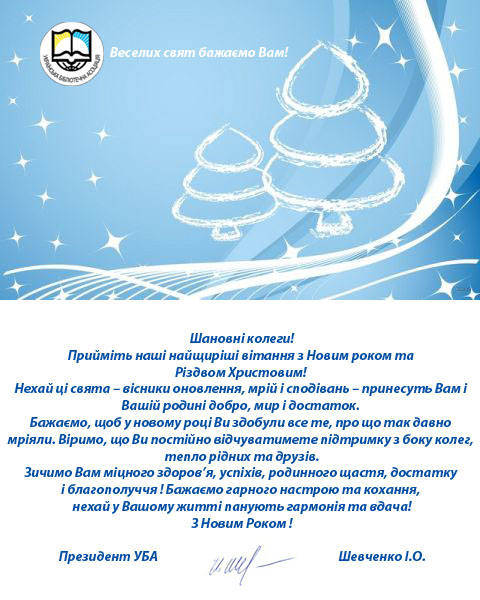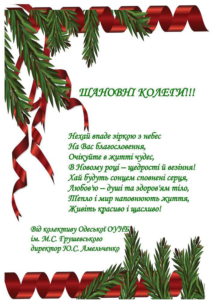 Нехай ці свята – вісники оновлення, мрій і сподівань – принесуть Вам і Вашій родині добро, мир і достаток. Бажаємо, щоб у новому році Ви здобули все те, про що так давно мріяли. Віримо, що Ви постійно відчуватимете підтримку з боку колег, тепло рідних та друзів.